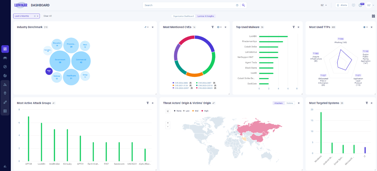 A Threat Intelligence Analytics területén a kulcsmegoldás a Luminar – Cyber Threat Intelligence platform, amely támogatja a szervezeteket a külső fenyegetések monitorozásában és elemzésében.